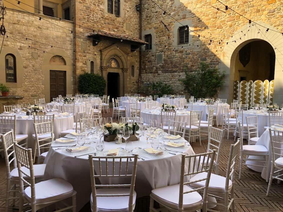Il Castello ha uno spazio unico al coperto che può ospitare fino a 180 persone attraverso l’allestimento di una tensostruttura, oltre ad avere altre sale nobili all’interno della struttura.