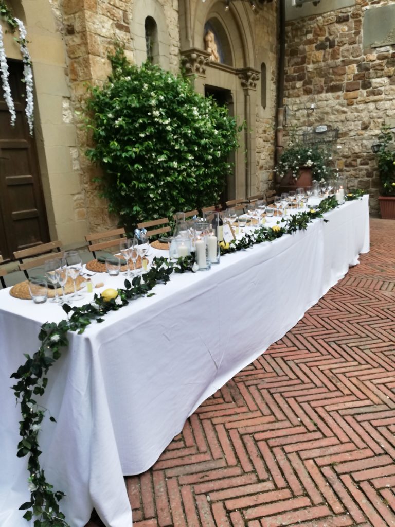 Innanzitutto l’allestimento per il ricevimento ruota attorno al tema del matrimonio ed in Toscana viene particolarmente apprezzato il tema country ma con un tocco di eleganza in più.