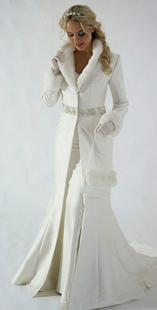 Se invece volete rimanere su uno stile più semplice basterà abbinare un bolero in pelliccia ecologica, senza così rinunciare all’eleganza. Potreste optare anche per un cappotto in “gabardine” di lana che potrà essere indossato sopra un abito a sirena, il colore del cappotto dovrà essere necessariamente coordinato con l’abito o in tinta unita, cercate comunque di evitare un tono uguale a quello dell’abito ma in questo caso sarà necessario dare un contrasto, tipo con un avorio o un panna oppure se volete osare, perchè non scegliere un cappotto rosso o rosa antico? Naturalmente lo stile non dovrà discostarsi troppo dai toni scelti per il “mood” del vostro matrimonio,